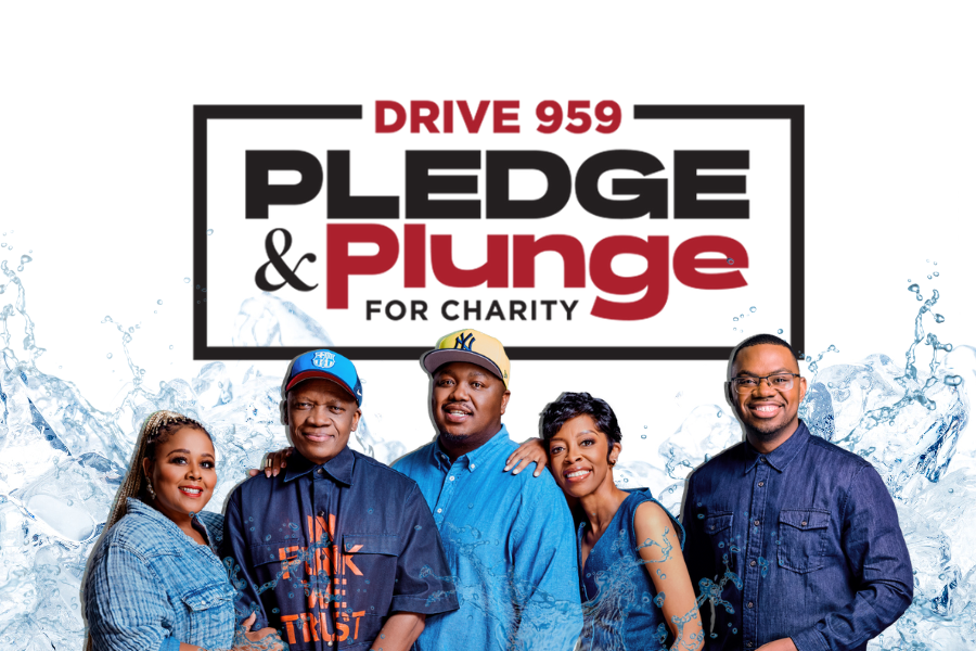 Join the Drive 959 team, Glen, Kgomotso, and Skhumba, to Pledge and Plunge for charity on Monday, 1 December 2025, from 3PM to 6PM.