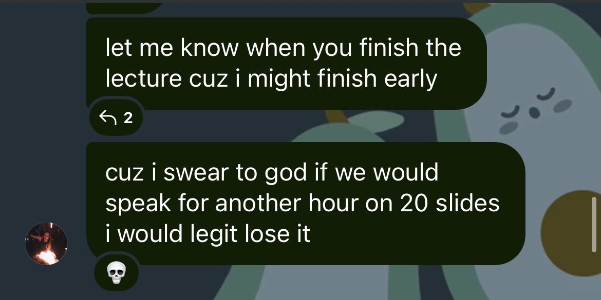 If you message your course group chat about the crisis, you’ll get one of the following responses: