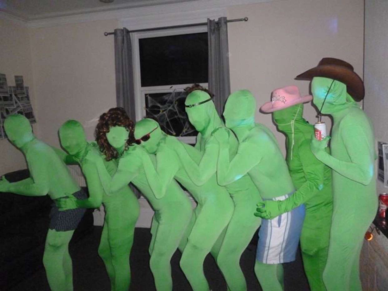 Starting off strong, we have the greenscreen men. This is truly one of the most hilarious group Halloween costumes I have ever seen.