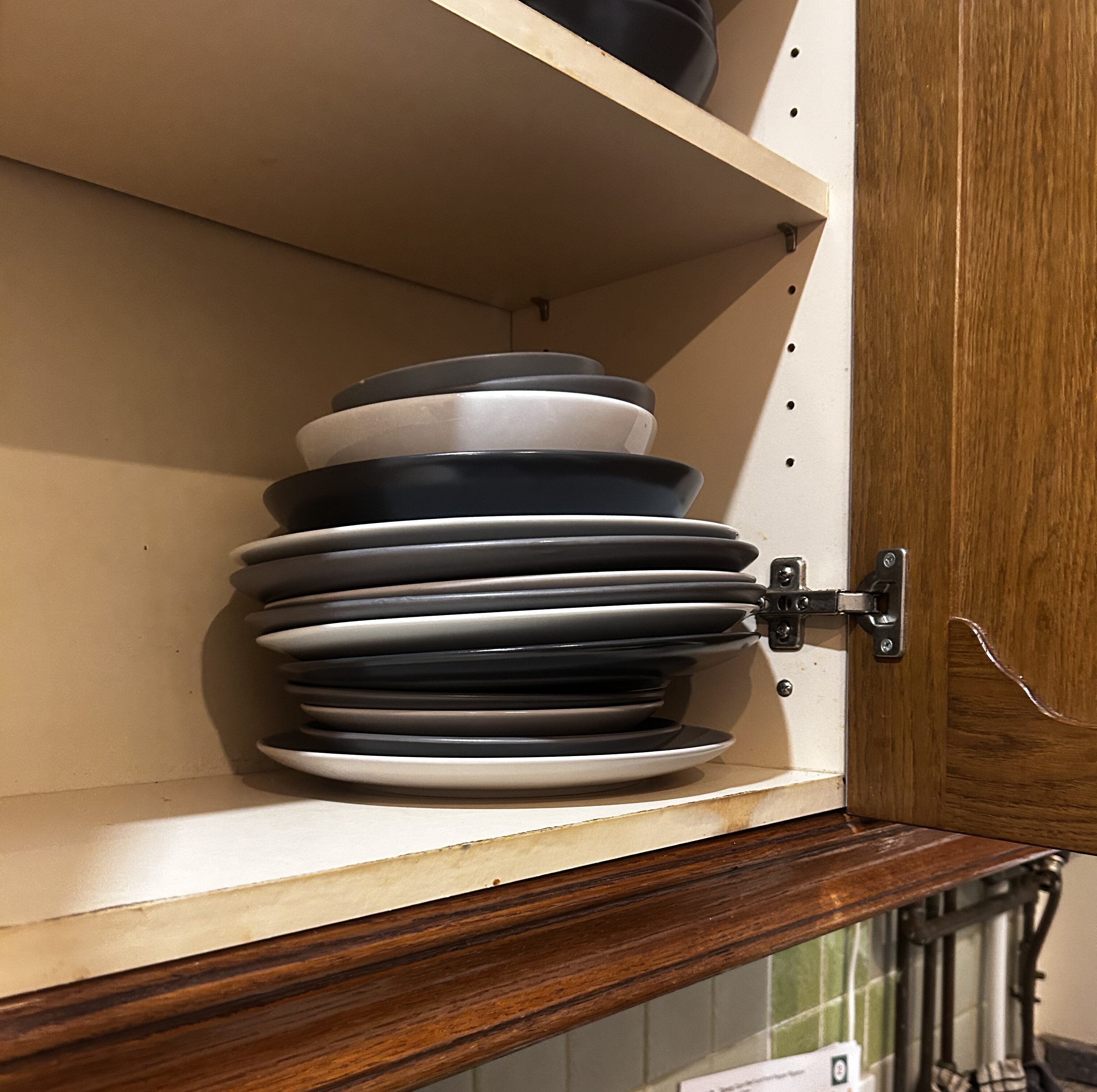 Opening the cupboard is an act of bravery. Plates are stacked in the order they are picked out of the dishwasher rather than by size, with bowls and mugs balanced precariously on top of one another. Removing one item feels like defusing a bomb. Nobody is aware of the problem, no one addresses it.