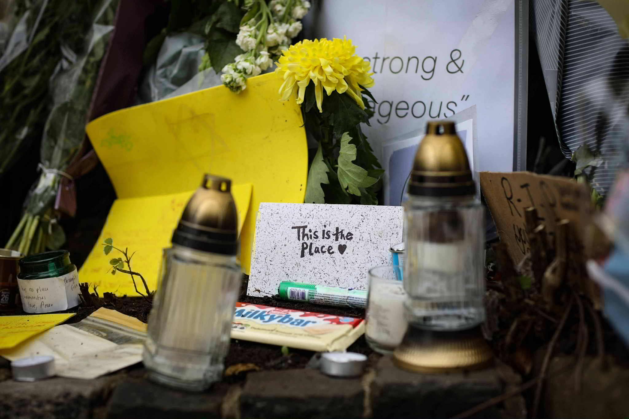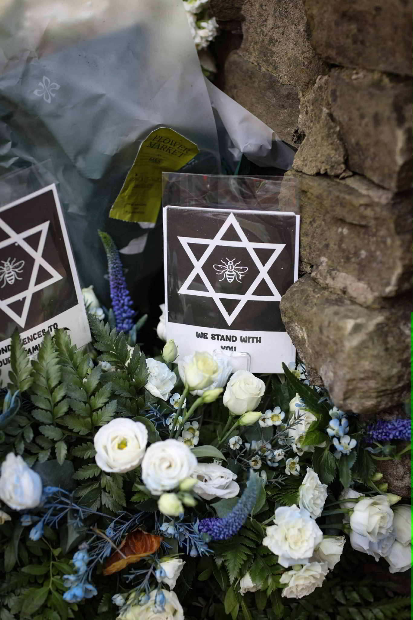 Countless tributes have been left outside of Heaton Park Synagogue following a terror attack last week left two people dead.