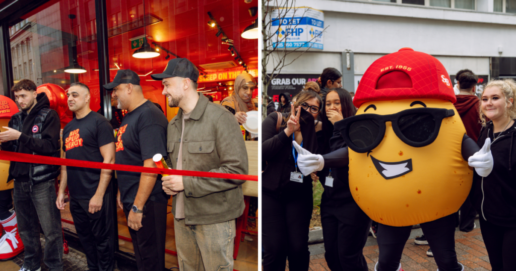 SpudBros Express Sheffield opened with a special event, fit with a ribbon cutting, dancing potato mascot, all spuds priced at 50p and toppings at 5p.